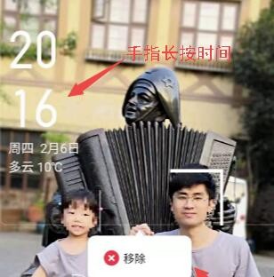 1、手指长按时间,弹出菜单栏,选择【移除】。