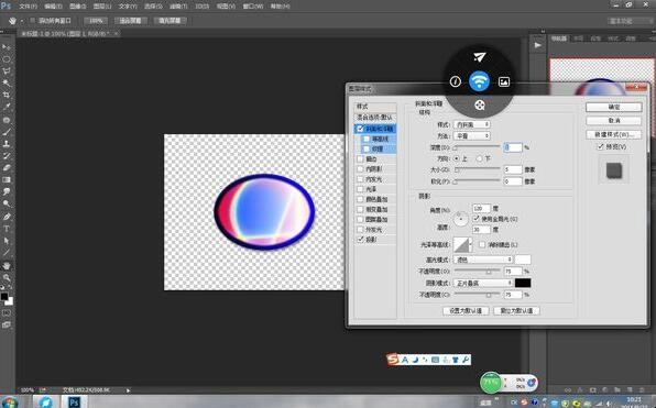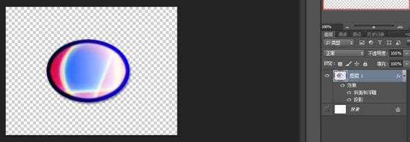 4、双击调出”图层样式“,设置”斜面和浮雕“、”投影“效果。