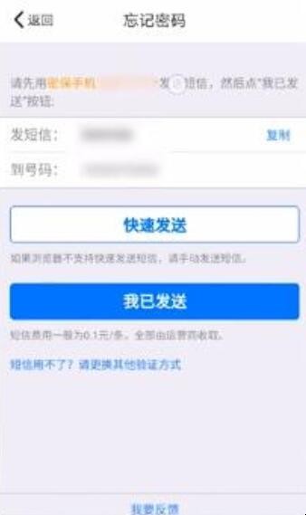3、如果绑定了手机,可以通过短信验证码来修改密码解决。