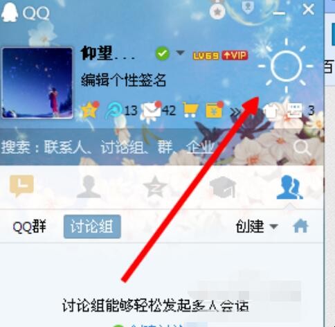 1、我们找到qq页面的小箭头。