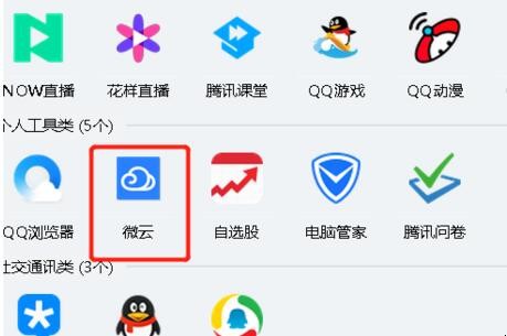 3、然后在QQ下方点击“微云”。