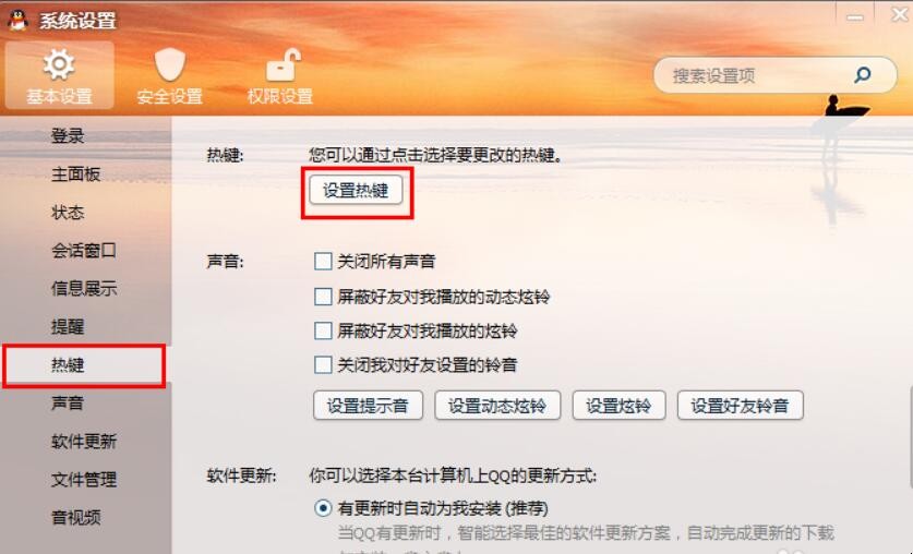 2、在打开的“系统设置”窗口中,切换至“热键”选项卡,然后点击“设置热键”按钮。