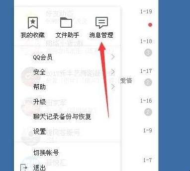 1、在QQ面板当中点击设置,然后点击消息管理选项。