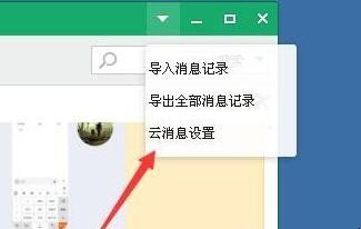 2、在打开的消息管理界面,点击顶部的三角按钮,然后点击云消息选项。