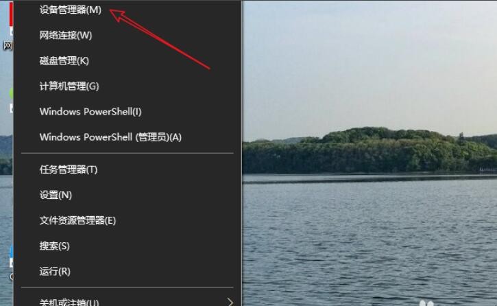 1、我们鼠标右键点击桌面左下角的windows图标,点击打开设备管理器,如图所示。