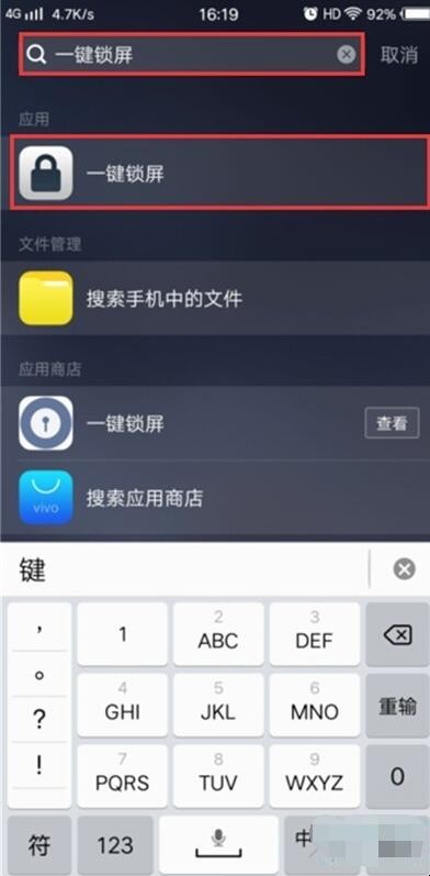 2、然后在搜索框输入【一键锁屏】搜索,下方会弹出来你搜索的程序。