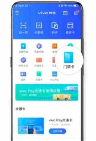 1、打开vivo钱包APP,在首页点击“门禁卡”。
