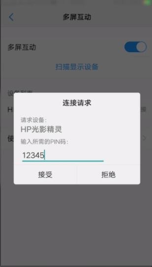 3、自动扫描设备,输入“PIN码”点击“接受”,等待连接成功即可。