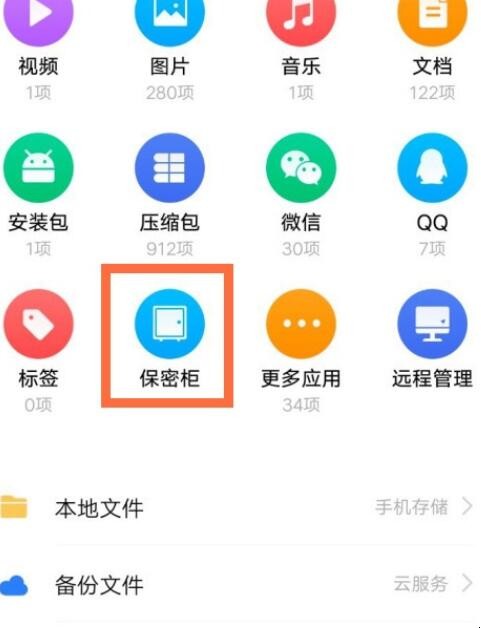 1、打开手机桌面上的文件管理,点击【保密柜】。