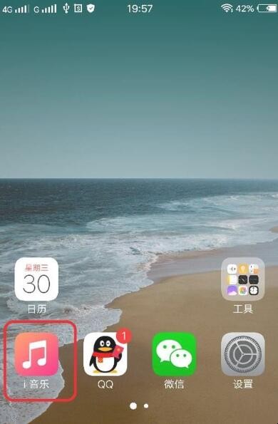 1、首先,打开手机,在主界面上找到“i音乐”图标,并点击一下。