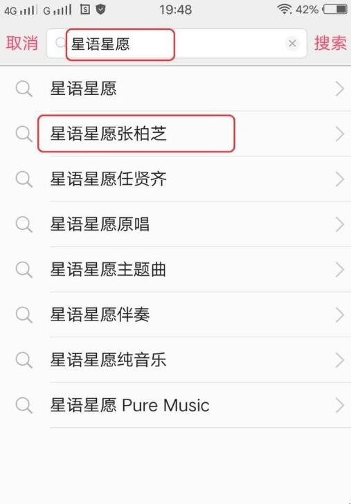 3、在搜索栏输入歌曲的关键字,系统会自动匹配,选择您需要的搜索项,点击一下。