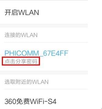 2、在已连接的wifi下方,点击“点击分享密码”按钮。
