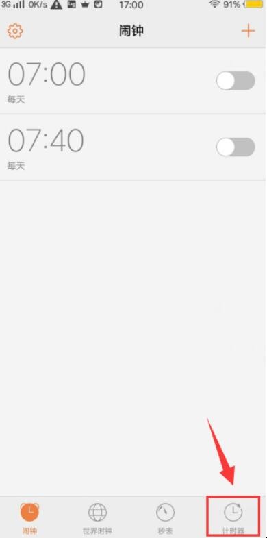 2、进入vivo手机闹钟时钟界面后,点击进入屏幕右下角的计时器。