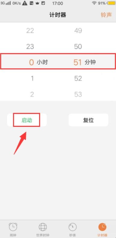 3、进入vivo手机计时器界面后,设置好计时的时间,点击启动就可以启动计时器了。