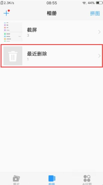 4、进入相册程序,找到最近删除文件夹,即可看到最近删除了的照片和视频。