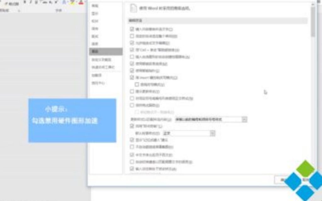 4、在弹出的窗口中点击“高级”选项,再找到并点击“勾选禁用硬件图形加速”即可。
