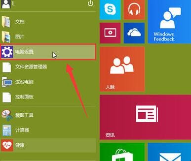 1、点击打开,开始菜单-电脑设置,打开电脑设置窗口。