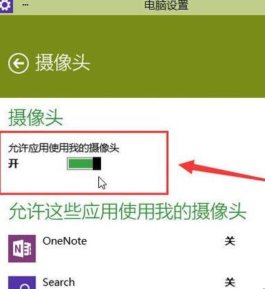 4、点击将允许应用使用我的摄像头开启,关闭电脑设置窗口完成操作。