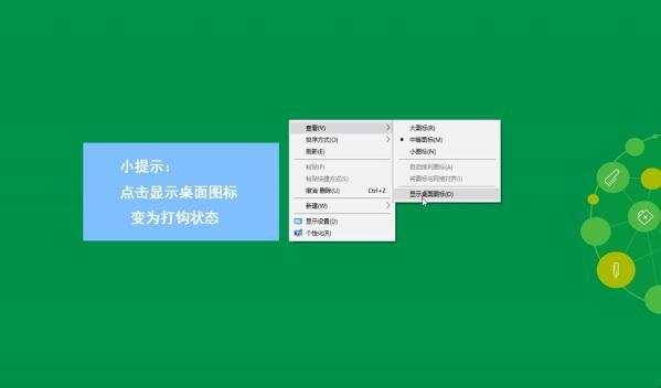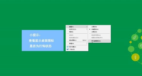 2、查看“显示桌面图标”选项是否为打钩状态。