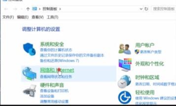 1、首先打开“控制面板”,点击“网络和Internet”。