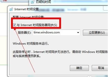 4、在“与Internet时间同步的前面打钩”,然专后先点击立即更新,再点击“确定”。