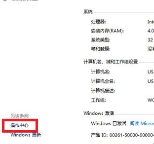 1、首先鼠标右键点击“我的电脑”,选择“属性”,接着会进入“系统”窗口,点击进入左下角的“操作中心”。