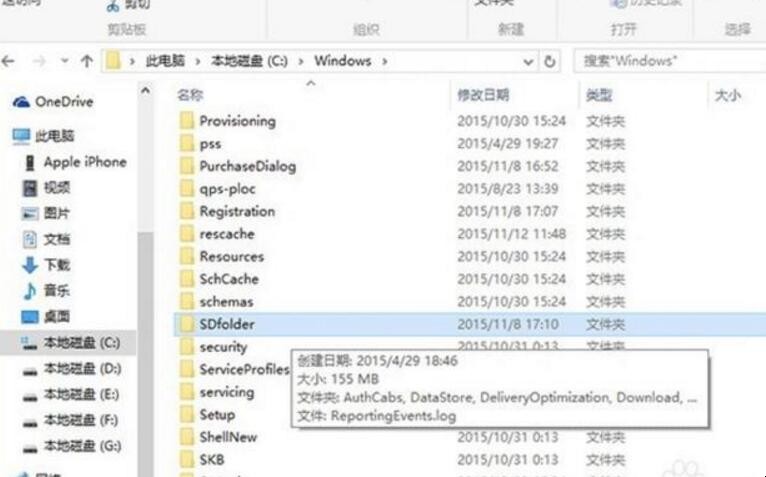 4、重命名C:WindowsSoftwareDistribution文件夹为SDfolder。