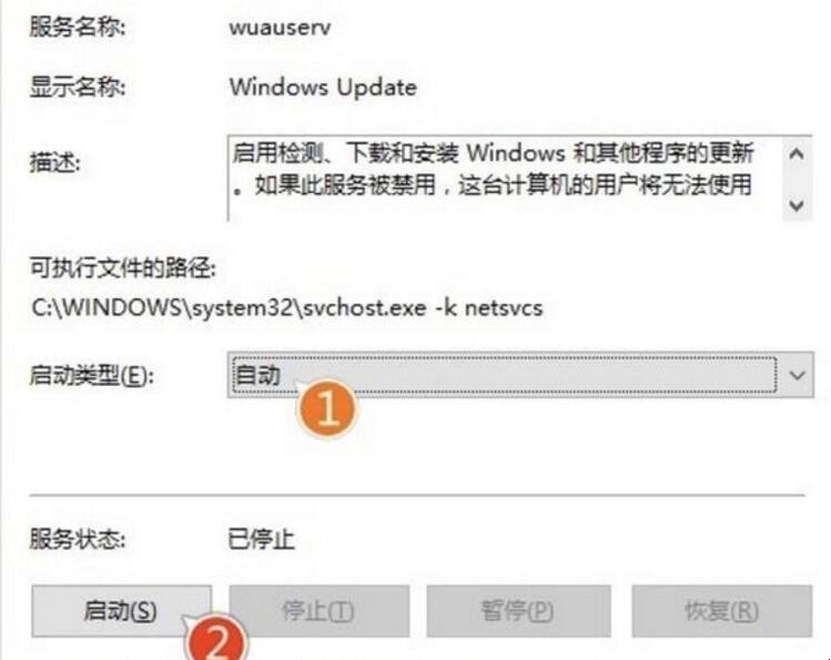 5、重命名完成后重新启动WindowsUpdate服务(调整启动类型并开启服务),再尝试检查更新和安装。