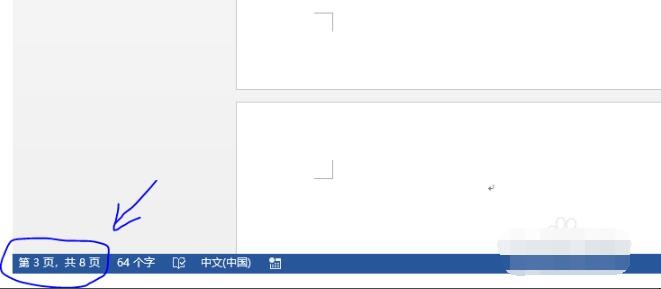 6、此时在状态栏中即会显示当前word文档的页码信息。