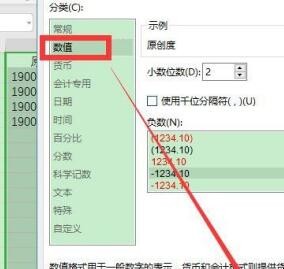 3、把数字分类选择为“数值”,然后点击“确定”。