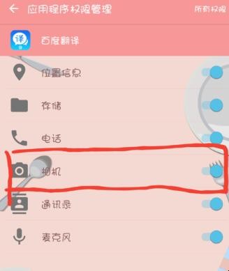 3、进入选择你所需要打开的软件勾选相机选项即可。