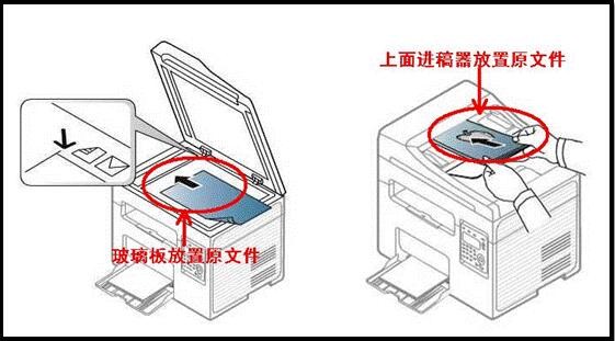 2、安装程序完毕后,将单页文档正面朝下放在文档玻璃板上,或者将文档正面朝上装入进稿器。