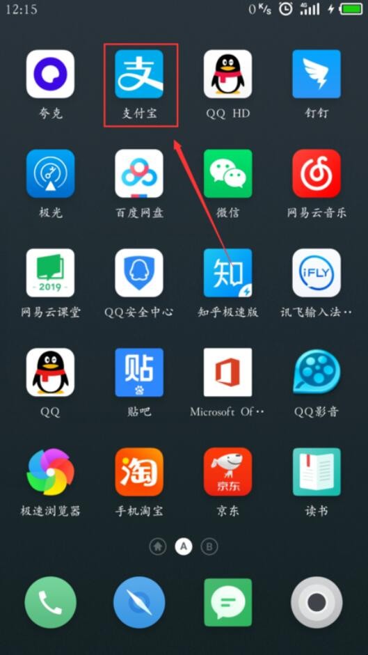 1、在手机待机桌面中,找到支付宝客户端,然后点击进入。