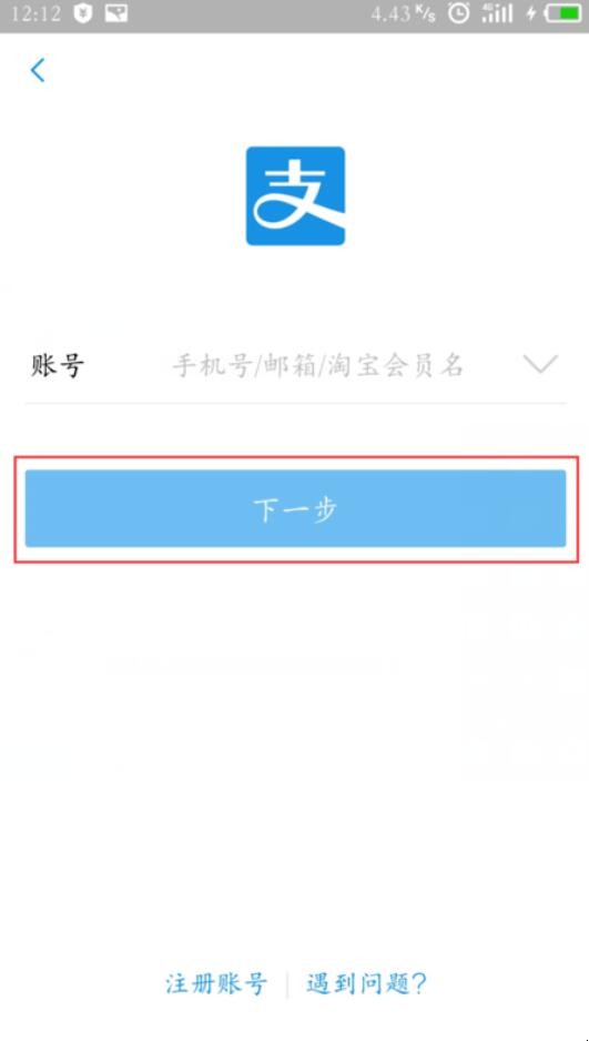 2、在支付宝账户登录界面,根据提示输入需要登录的个人账户账号(手机号,邮箱号或者是淘宝会员名),然后点击下一步进入。