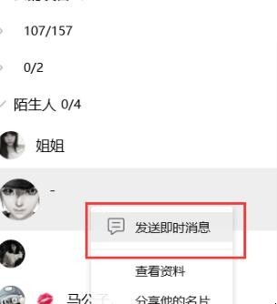 3、右键点击发送即时消息。