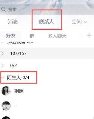 2、点击联系人,选择陌生人。