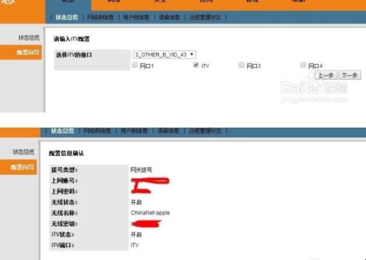 4、设置自己的无线WIFI密码(在这里无线光猫E8C的WIFI名称必须设置前缀为“ChinaNet-”)小编在这里就设置成“ChinaNet-apple”并设置好自己的WIFI密码。点击【下一步】。