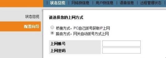 2、登陆成功后点击【状态】按钮,左手边有一个【配置向导】点击它。