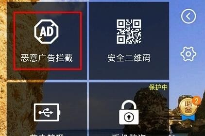 1、取消安全软件禁止QQ通知栏图标的显示。以360手机卫士为例,打开360手机卫士,在界面中找到“恶意广告拦截”卡片,点击进入。
