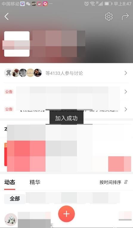 5、当界面中出现“加入成功”提示时,就成功加入圈子了。