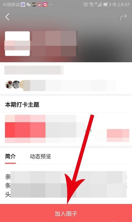 4、打开圈子主页以后点击界面底部的“加入圈子”按钮。