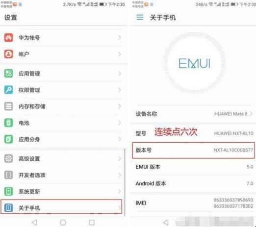 1、打开手机的【设置】,点击【关于手机】,在版本号这个选项的地方连击版本号六次(多点击几次,就会出现提示你已处于开发者模式)。
