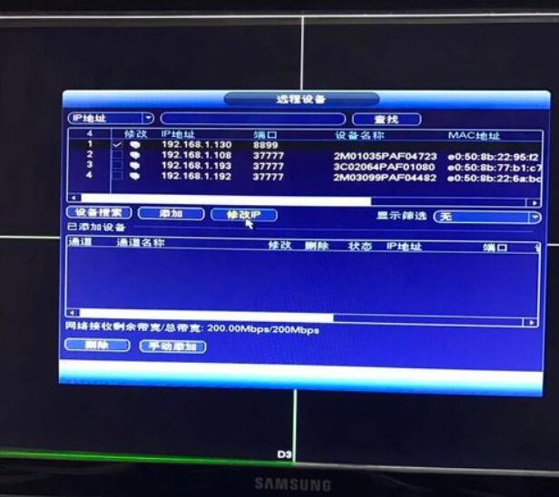 4、大家可以看到,目前已经在局域网里搜到4个摄像头,然后勾选第一个,点击“修改iP”。2-3