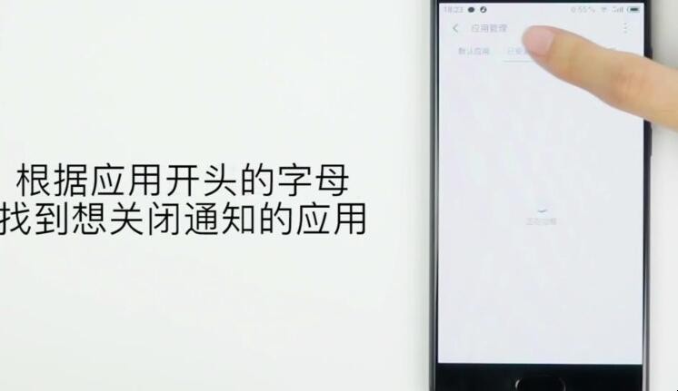 2、然后根据应用开头的字母,找到想关闭通知的应用。