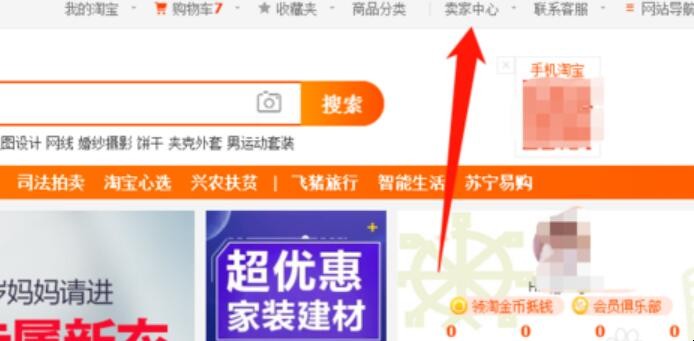 2、在右上角点击卖家中心,登陆账号进入卖家中心(如果没有淘宝账号,这里会提示注册一个淘宝账号)。
