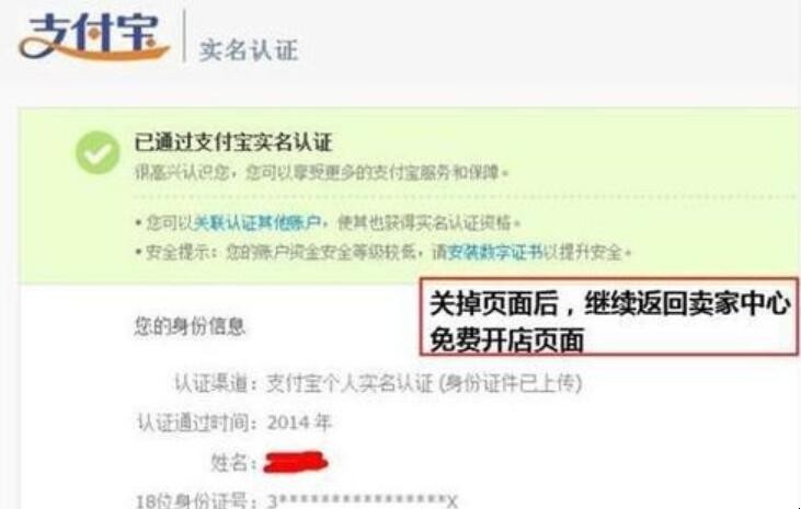 5、然后输入正确金额后,系统确认完成,关掉页面后,继续返回淘宝卖家中心免费开店页面。