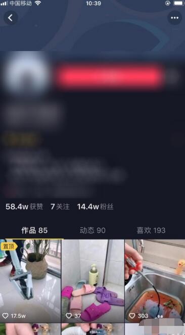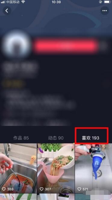4、我们点击切换至下方作品标签栏的【喜欢】,这便是此抖音用户点赞的作品列表了,如图所示。