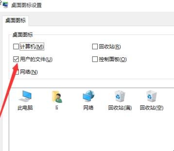 4、最后在图标里,在选择计算机、回收站、网络、控制面板,再点击确定即可。
