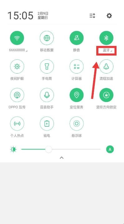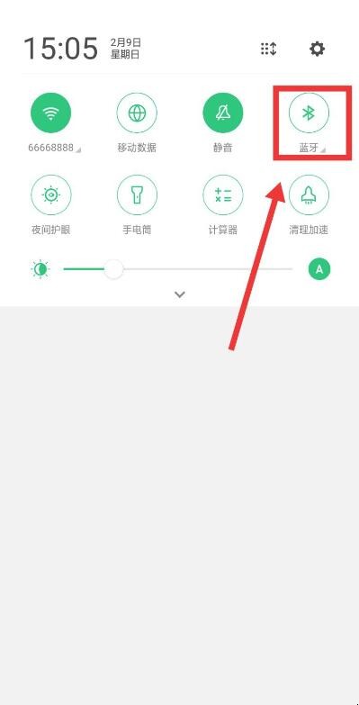 1、首先,打开手机,下拉任务栏,打开如图所示,找到并点击开启“蓝牙”。