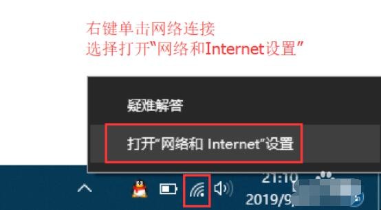 1、有些时候无线连接出现黄色叹号,是因为无线网络连接可能出现故障,或者是无线网络连接需要手动的重置一下,使它重新获取IP地址和DNS地址。首先右键单击桌面右下角的无线WIFI图标,单击“打开网络和Internet设置”。
